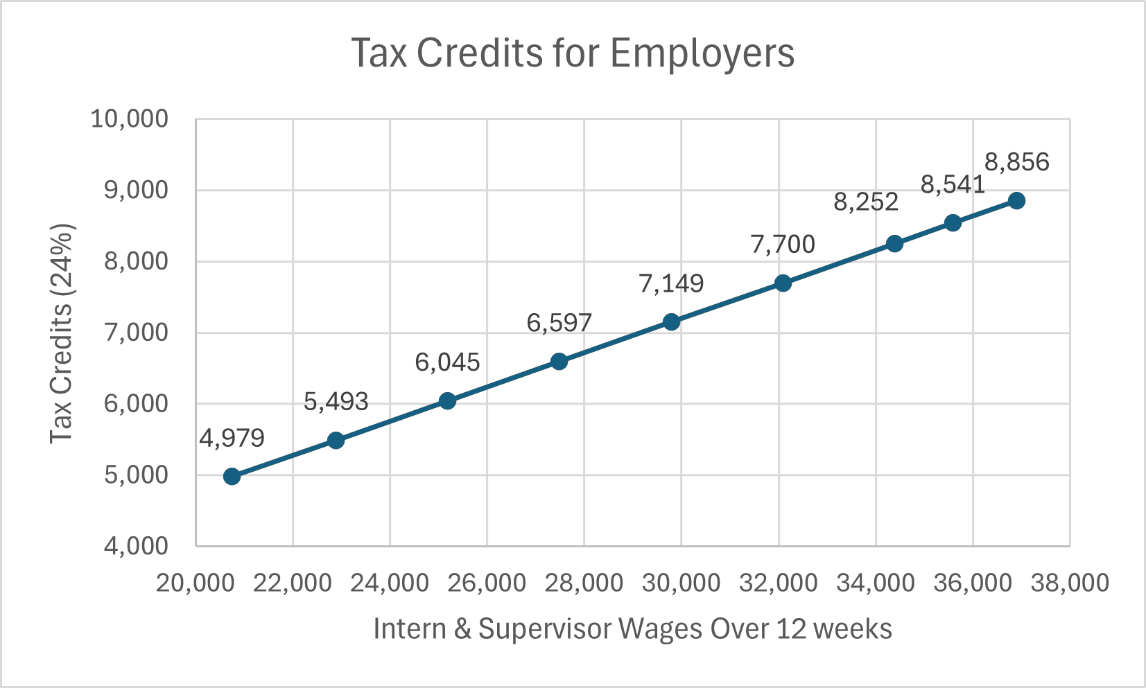 - Depending on various circumstances, your company may be able to obtain 24% to 32% in tax credits for expenses related to the internship. For more information, please click here.